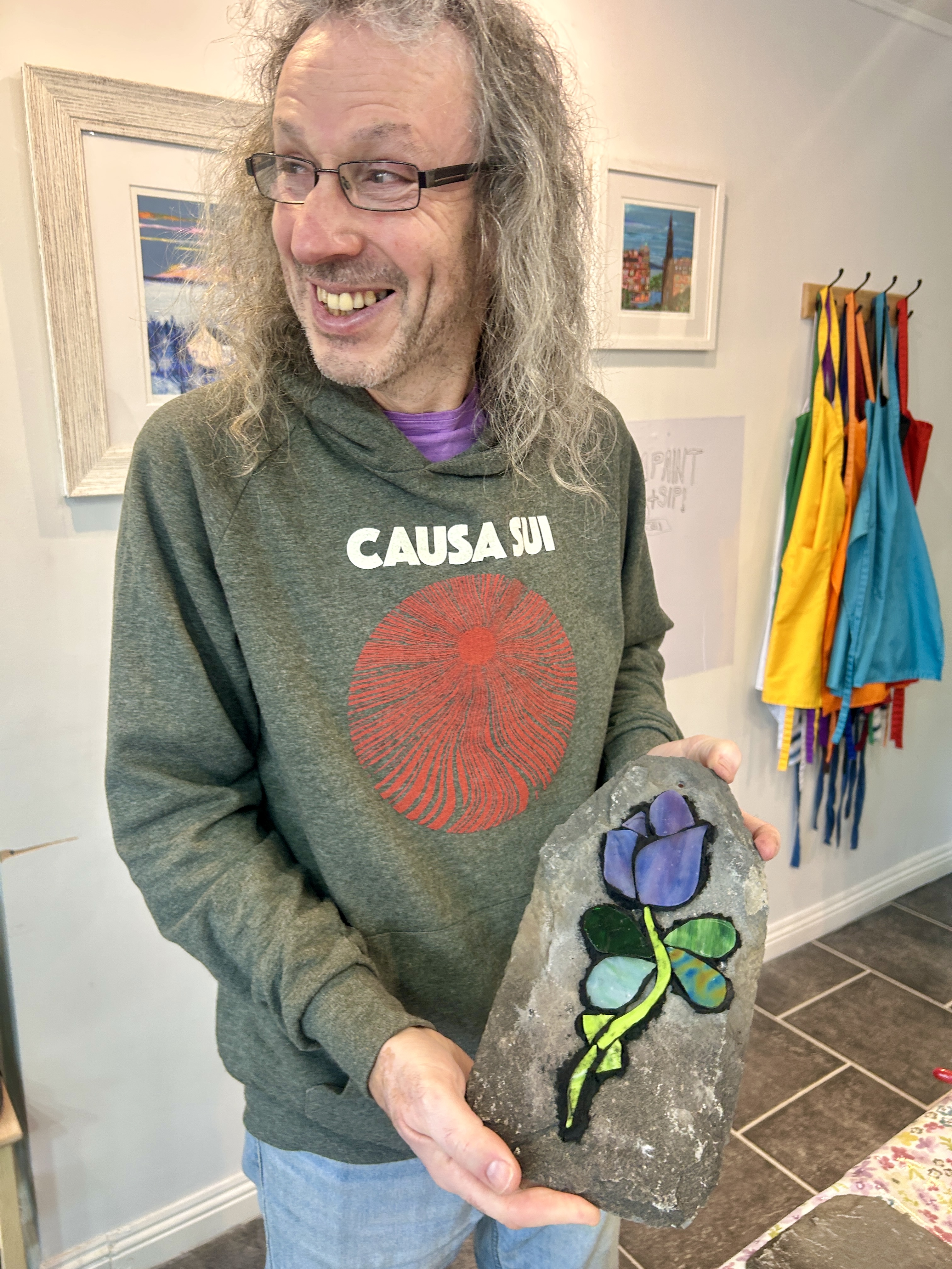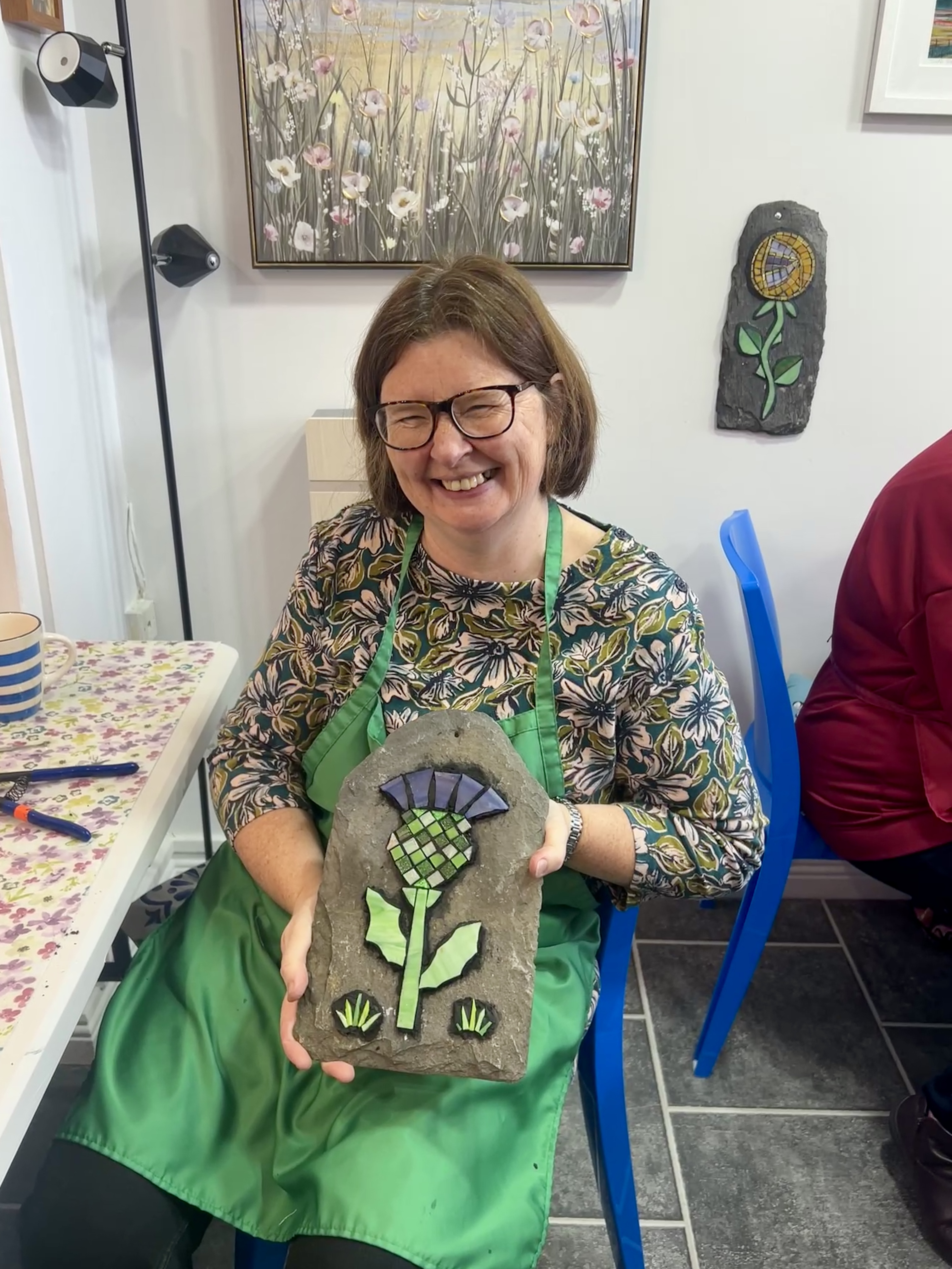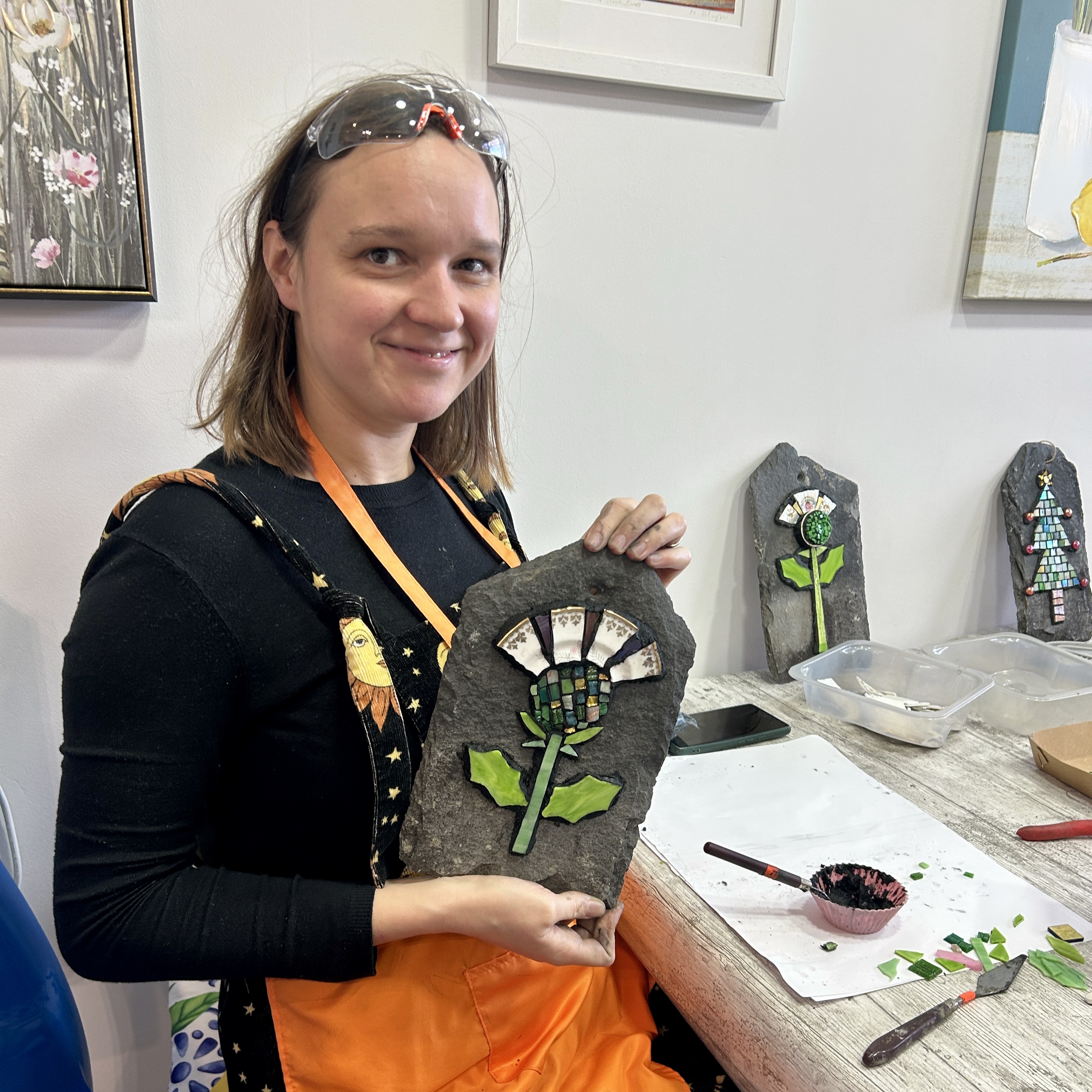 MORNING Workshop: PICASSIETTE MOSAIC THISTLE OR FLOWER ON SLATE with Rhona Duffy